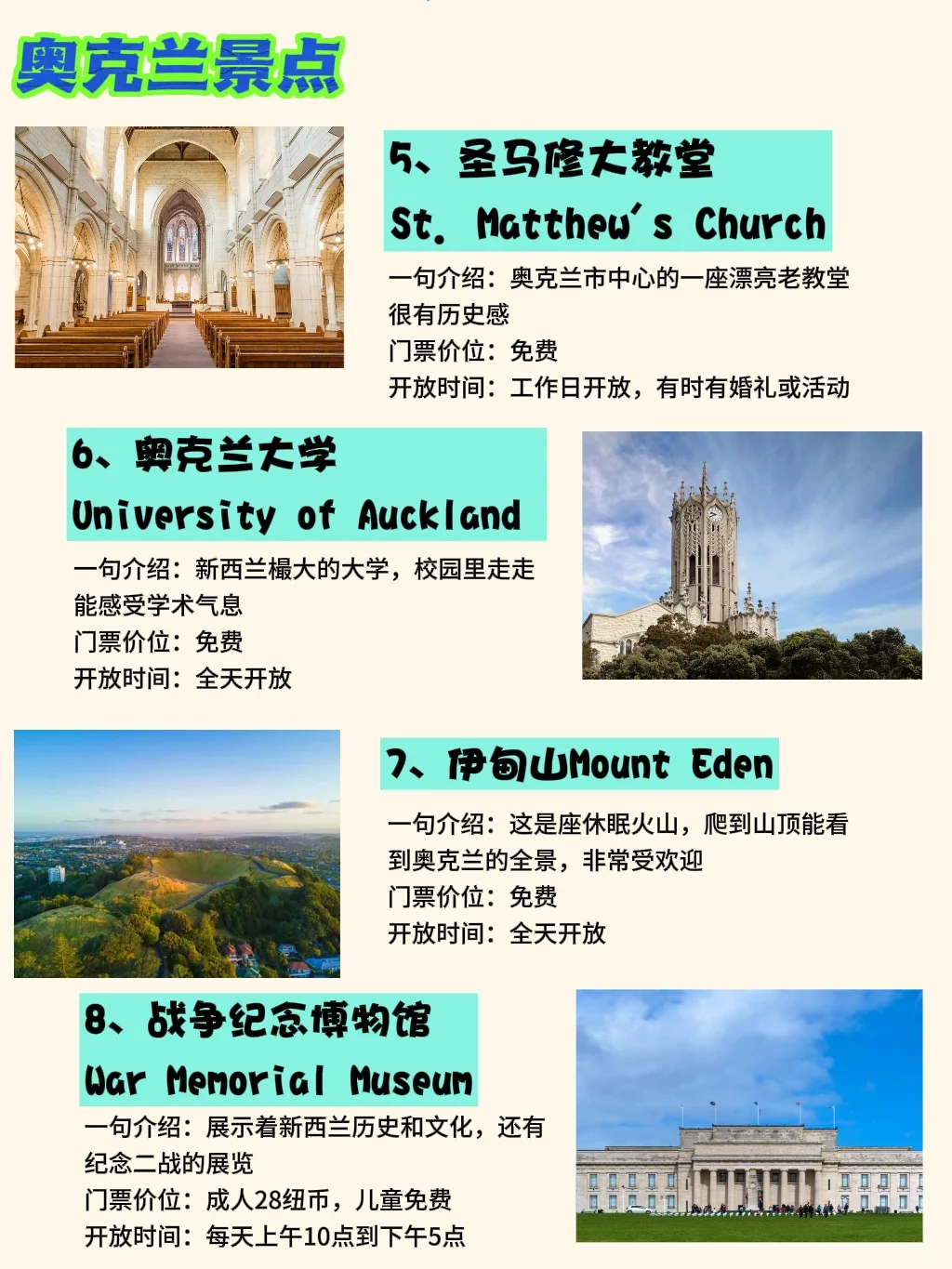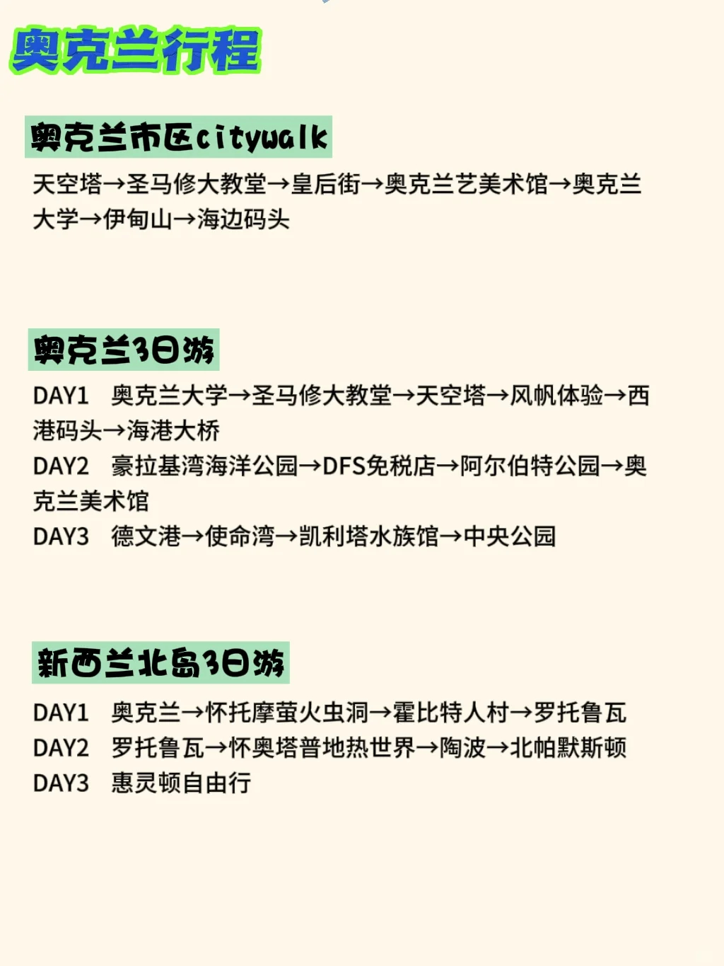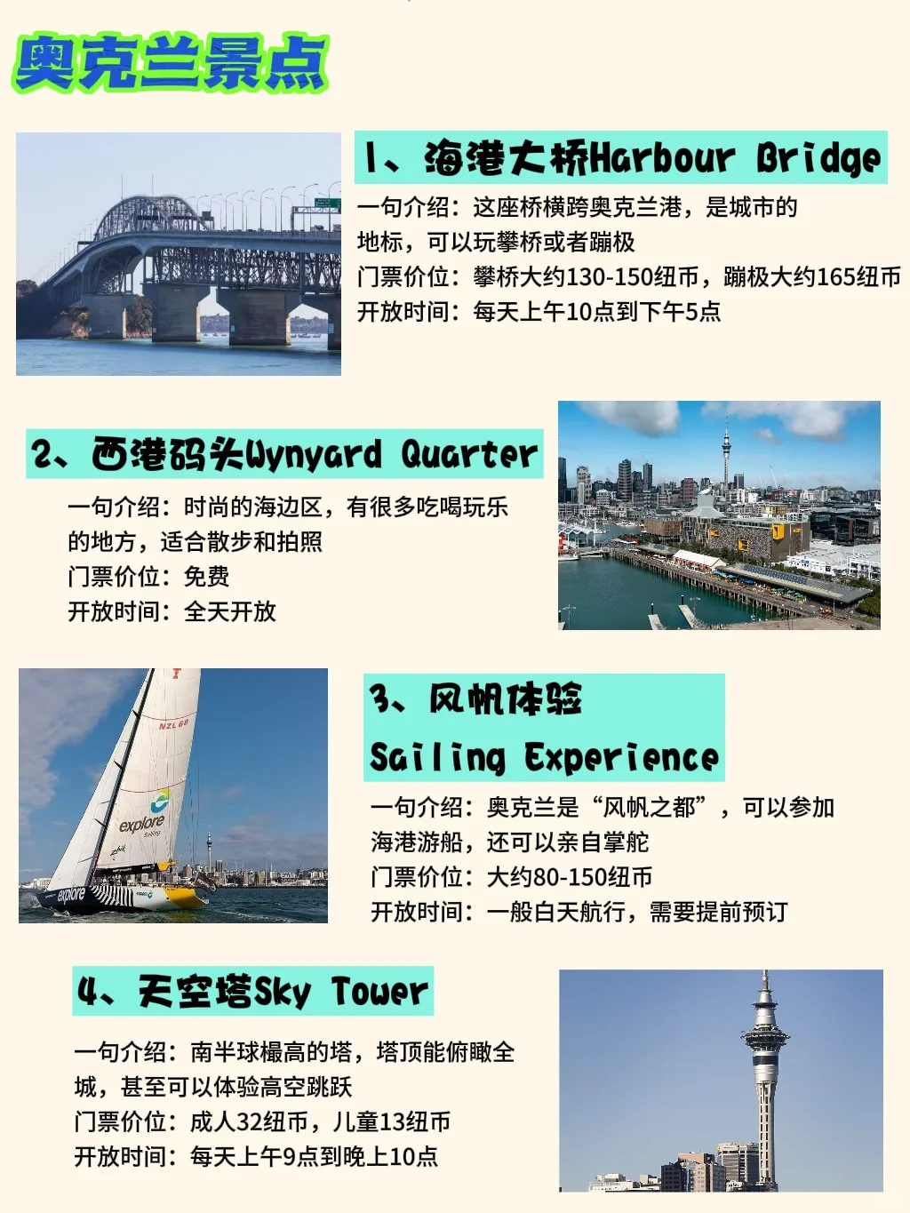 - 第一天:奥克兰大学 ➡️ 圣马修大教堂 ➡️ 天空塔 ➡️ 风帆体验 ➡️ 西港码头 ➡️ 海港大桥