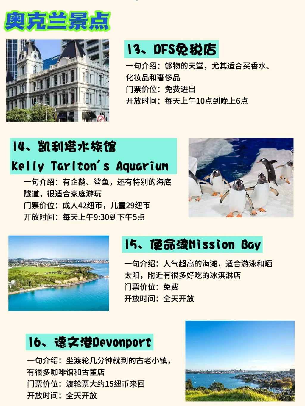 - 第二天:豪拉基湾海洋公园 ➡️ DFS免税店 ➡️ 阿尔伯特公园 ➡️ 奥克兰美术馆