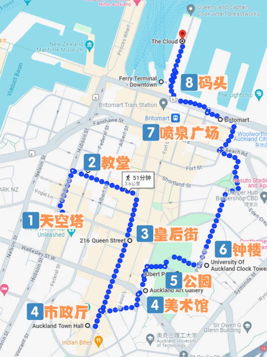 奥克兰citywalk路线(全程大约需要3小时,包含走走停停的时间):