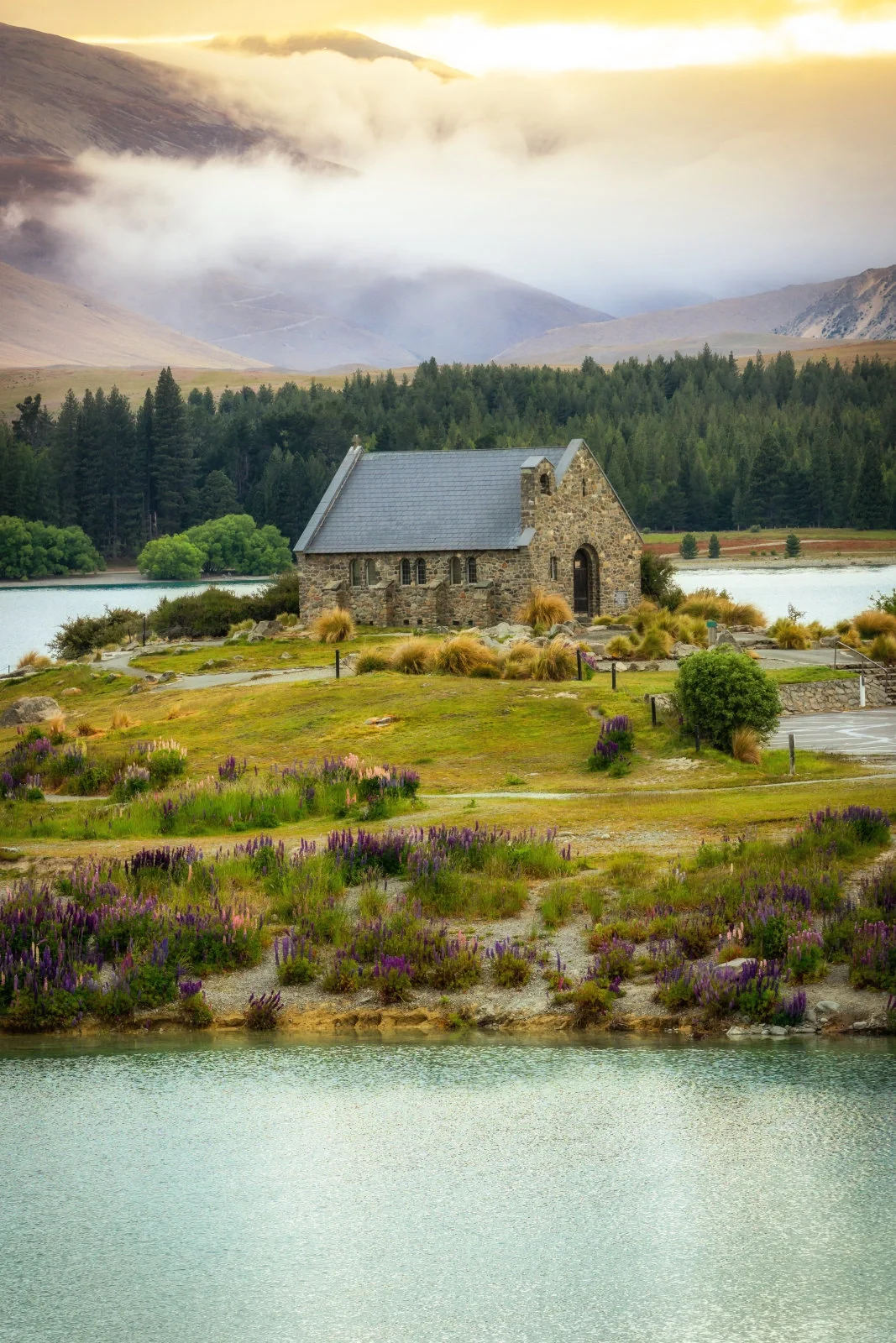 新西兰最小的好牧羊人教堂与美丽的蒂卡波湖