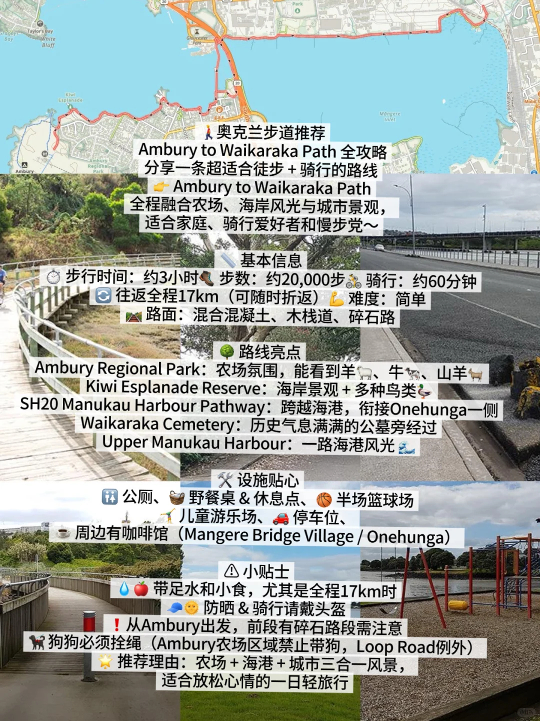 混合混凝土与木栈道,途经农场、海岸线与湿地,沿途可观鸟、野餐、亲子友好