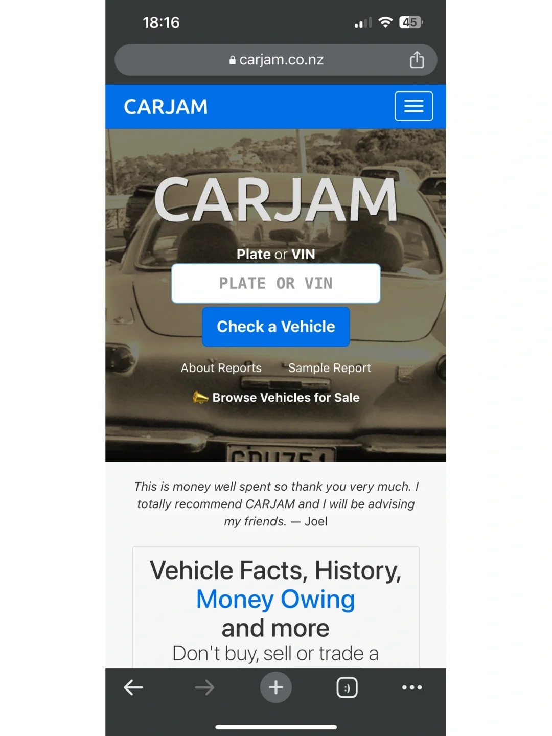 Carjam直接输入车牌号查询车辆历史记录(可以查询到是否有过车祸,是不是偷窃车等信息)。